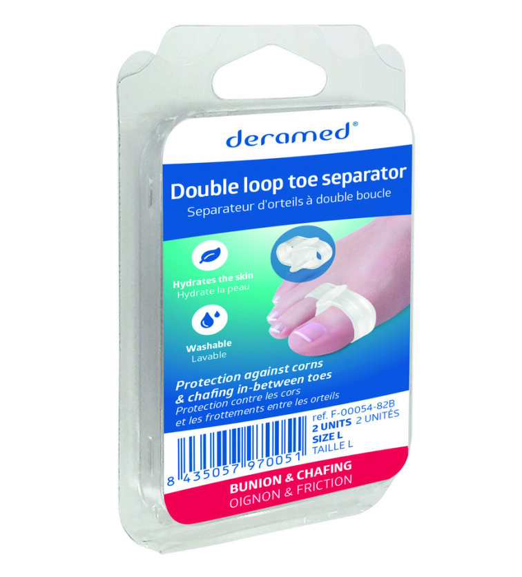 Despartitor digital bucla dubla pentru mentinerea in pozitie. Din gel moale, elastic si hidratant, elimina durerea cauzata de bataturi si inflamatii. Separa degetele 1 si 2 de la picioare in pozitie corecta, prevenind suprapunerea si protejeaza degetele frecarea cu incaltamintea, mentinandu-se in pozitie.