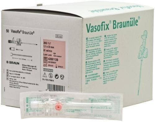 Cateter periferic tip braunula cu port de injectare: canula cu bizou scurt, camera de reflux sanguin transparenta cu filtru hidrofob, cateter din FEP, cu 4 linii radioopace inglobate, PVC free, latex free, aripioare cu inclinatie anatomica